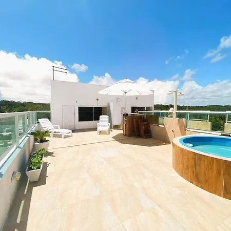 The spacious 1-bedroom Flat Em Cobertura Com Vista Para O Mar Cabo de Santo Agostinho is located approximately 7 km from Calhetas Beach and entices guests with a Jacuzzi. Of Coral Cove beach is situated within 10 minutes' drive of the apartment.